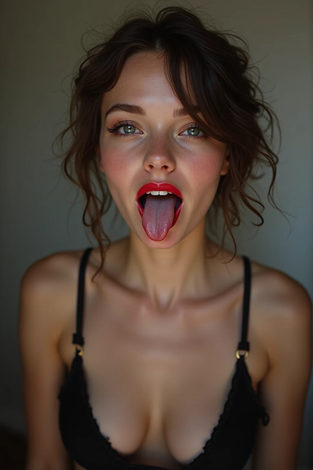 Her tongue is pierced with a micro-transmitter, broadcasting her every desire.