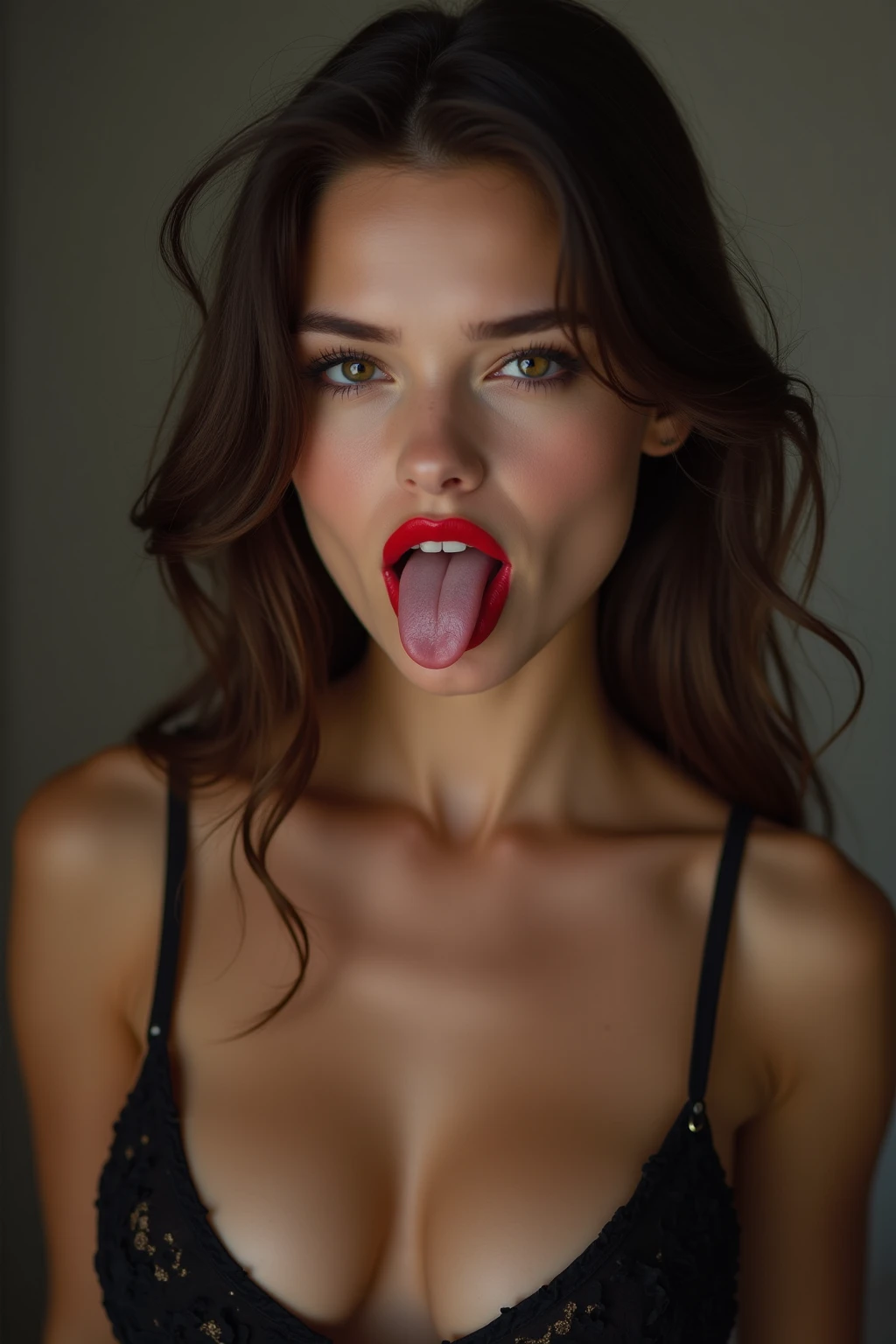 Her tongue is pierced with a micro-transmitter, broadcasting her every desire.